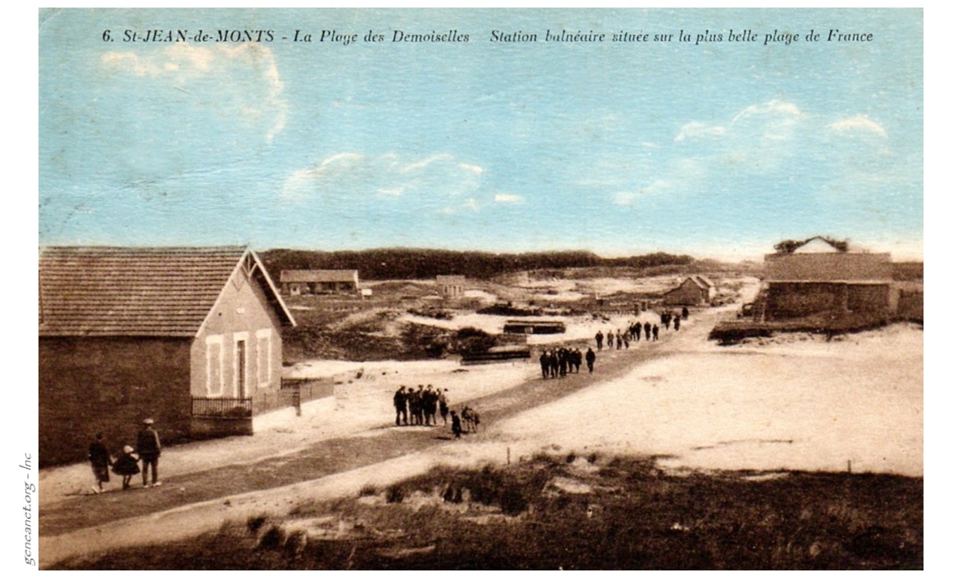 Et plus près de nous, « en 1918, les Américains choisirent ces grands espaces dunaires pour implanter l’École de tir aérien de Saint-Jean-de-Monts, un camp d’aviation de 2 000 sammies (1) et près de 200 avions. L’armistice signé, les terrains furent rendus à leurs propriétaires et transformés en lotissement par Théodore Mathurin Charpentier, en 1926. Les décennies suivantes virent l’avènement des congés payés et l’essor du tourisme balnéaire, donnant aux Demoiselles le visage que nous leur connaissons aujourd’hui… »