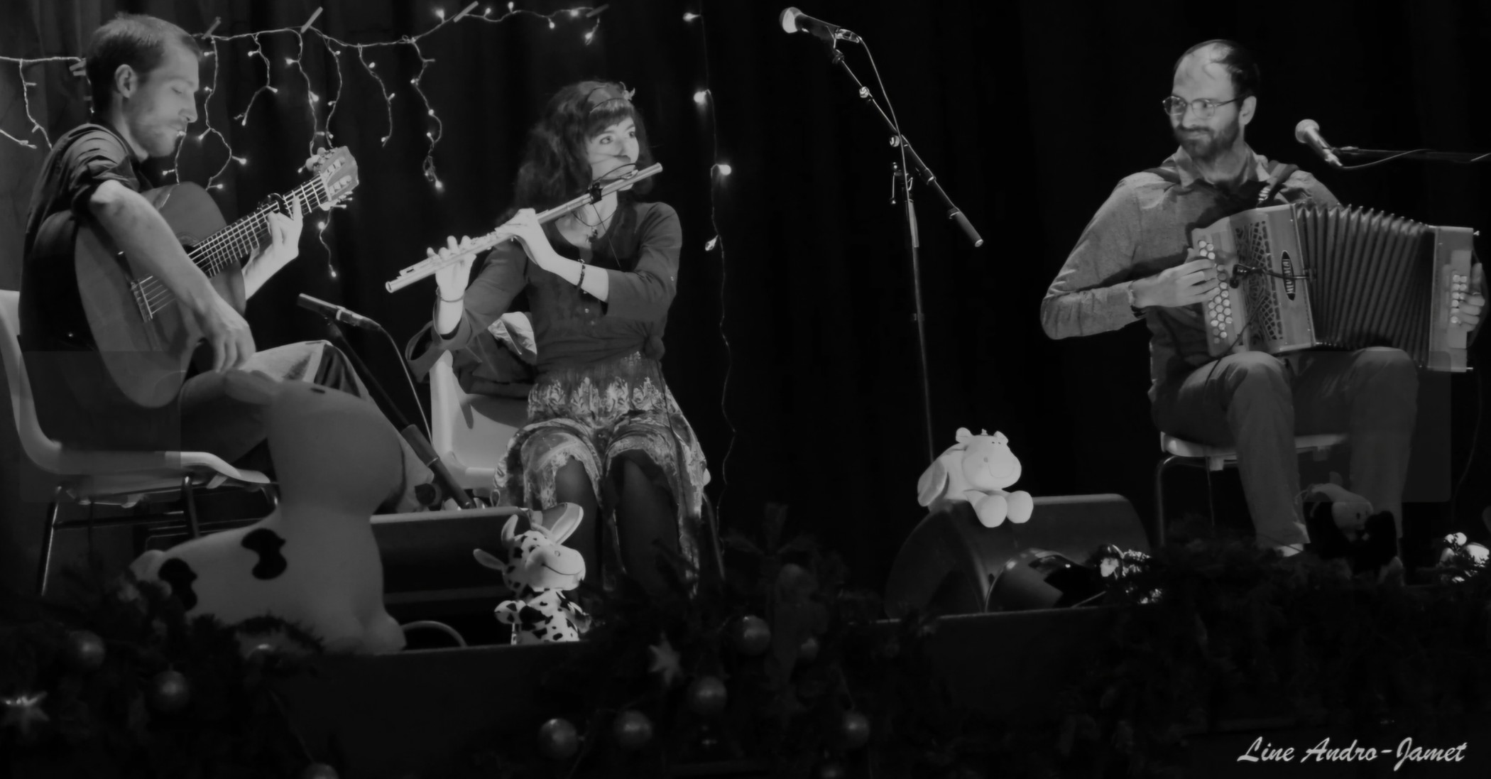 Tous trois sous influence fest-noz, classique, « plongés dans le trad dès l’enfance, » ils évoluent dans un répertoire résolument folk, mêlant compositions et morceaux traditionnels… avec des danses en couple (dont des valses asymétriques), ou collectives… le tout de différentes régions : Centre France, Sud-ouest, Bretagne…