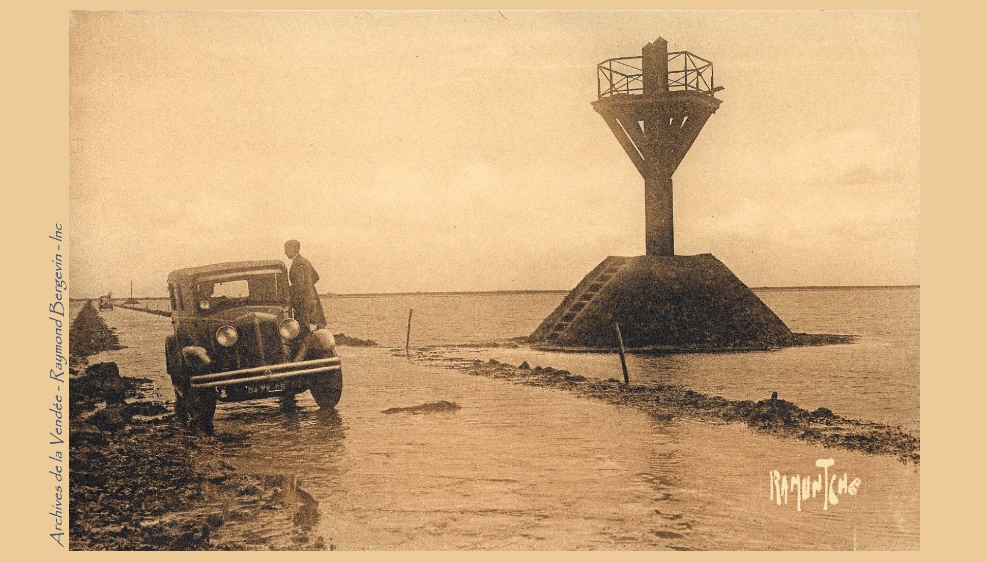 Sur le site des archives départementales de la Charente Maritime, on apprend que Raymond Bergevin, « originaire de La Châtre (Sarthe), s’installe à La Rochelle, » 66 rue des Merciers, « au début du XXe siècle. Passionné de photographie, il devient éditeur d’art vers 1920 sous le pseudonyme de Ramuntcho. Sa production de cartes postales est très volumineuse et concerne essentiellement le département de la Charente-Maritime, mais aussi quelques départements limitrophes du grand Ouest, dont la Vendée (…) A son décès en 1953, sa veuve [Marie Mangien-Tarricq] donne négatifs, tirages photographiques et cartes postales aux Archives départementales de la Charente-Maritime. Ce fonds très riche, surtout pour la période 1920-1940, permet de comprendre la façon de travailler de Raymond Bergevin, de la prise de vue à l’édition finale, avec souvent de nombreuses variantes dans le cadrage, la mise en page et les couleurs. »